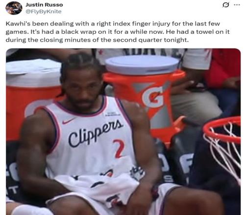 在哈登离队之后,小卡肩膀上的责任明显变得更重,快船随队记者Justin Russo也曝出小卡实际上一直是在带伤作战,右食指伤势始终困扰着他。
