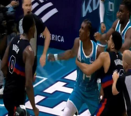 紧接着,斯图尔特离开活塞队替补席,冲向布里奇斯与之对峙。两人短暂扭打在一起,斯图尔特锁住布里奇斯的头部并多次出拳,直到裁判和赛场安保人员介入才得以平息。随着冲突蔓延至边线,现场甚至一度出现警察身影,四名涉事球员最终全部被驱逐出场。