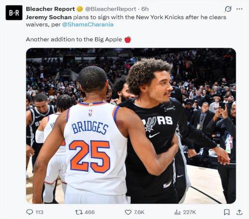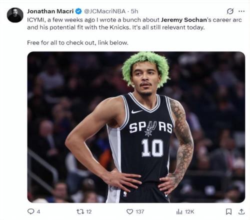 尼克斯队记乔纳森-麦克瑞写道:几周前我就撰写过杰里米-索汉的生涯发展轨迹与他跟尼克斯契合度的文章,如今这些内容依旧有参考价值,他的确很适合我们。