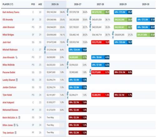 尼克斯原本就是14+3名单他们在等索汉度过澄清期,一旦签下索汉后全新的15+3名单就出炉:布伦森、唐斯、阿奴诺比、布里奇斯、哈特、米罗、阿尔瓦拉多、迈克布莱德、沙梅特、克拉克森、科莱克、迪亚瓦拉、胡克波尔蒂、索汉、达迪耶;杰米森、琼斯、麦卡勒(三个双向合同)。
