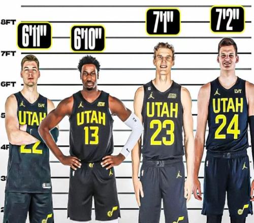 我们假设凯斯勒后续成功续约,那么下赛季爵士在前场摆出的高度就堪称恐怖了: