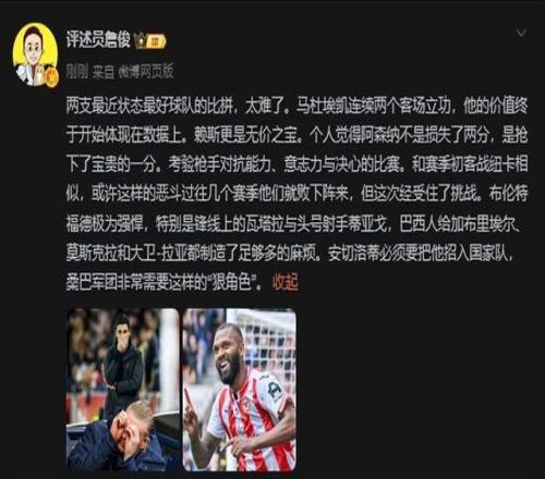“个人觉得阿森纳不是损失了两分,是抢下了宝贵的一分。”评述员詹俊在赛后的点评引发了枪手拥趸的激烈争论。不过他的论据是很清晰,比赛考验枪手对抗能力、意志力与决心的比赛。和赛季初客战纽卡相似,或许这样的恶斗过往几个赛季他们就败下阵来,但这次经受住了挑战。