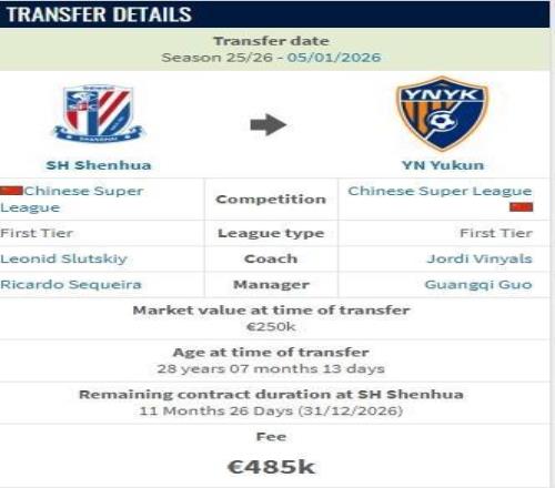 德转显示,鲍亚雄从上海申花加盟云南玉昆的转会费约400万人民币。